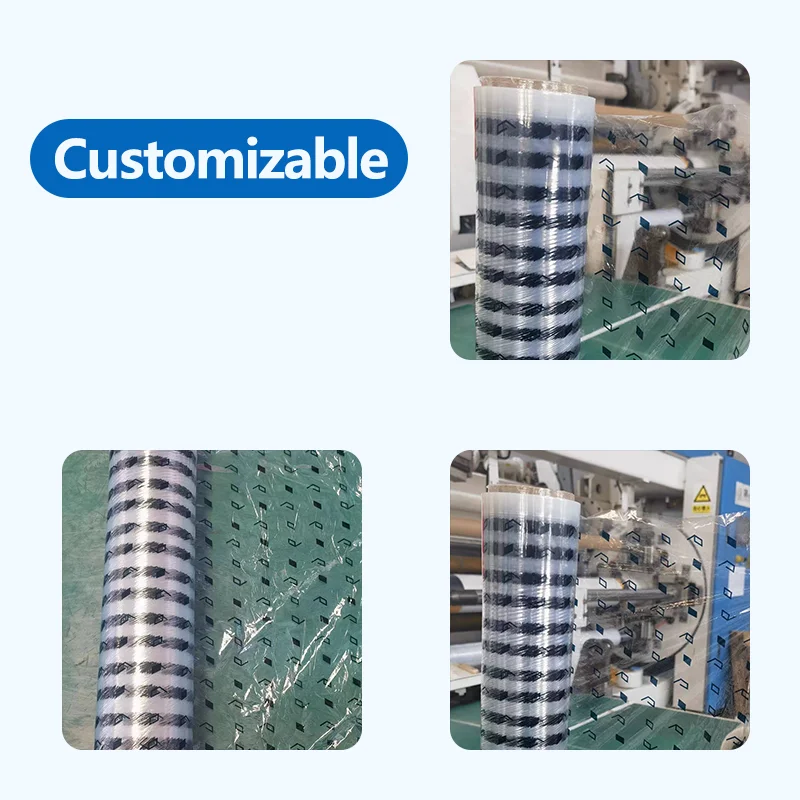 Aangepaste LOGO Gedruk Deursigtige Stretch Wrap LLDPE Verpakking Film Rol Sagt en Vugwaterbewys